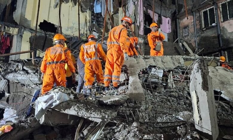 കെട്ടട്ടിട ഭാഗങ്ങള്ക്കുള്ളില് നിരവധി പേര് കുടുങ്ങിക്കിടക്കുന്നുണ്ട്. ബുധനാഴ്ച പുലര്ച്ചെ 12.05 നാണ് വിരാറിലെ രമാഭായ് അപ്പാര്ട്ട്മെന്റിന്റെ പിന്ഭാഗം തകര്ന്നുവീണത്. അപകടം നടന്ന് മണിക്കൂറുകളായിട്ടും തകര്ന്ന സ്ഥലത്തെ അവശിഷ്ടങ്ങള് നീക്കം ചെയ്യുന്നതിനുള്ള പ്രവര്ത്തനം തുടരുകയാണ്. ആറ് പേരുടെ മൃതദേഹങ്ങള് അവശിഷ്ടങ്ങള്ക്കടിയില് നിന്നാണ് കണ്ടെടുത്തത്.