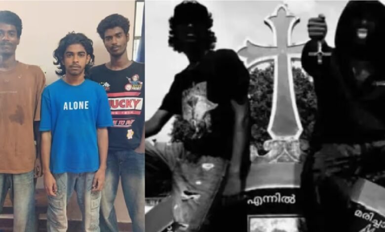 ലഹരിയിൽ സെമിത്തേരിയിലെ കുരിശിൽ തലകീഴായി കിടന്ന് റീൽസ് എടുത്തു ; ‘വീരപരിവേഷം’ ലക്ഷ്യമിട്ട മൂന്ന് യുവാക്കൾ കുടുങ്ങി; പോലീസ് ഇവരെ പിടികൂടിയത് സഹസികമായി