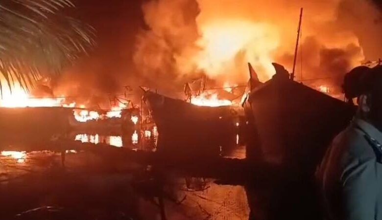 ആഴക്കടലിൽ പരമ്പരാഗത മത്സ്യബന്ധനം നടത്തുന്ന ഒമ്പത് ചെറിയ ബോട്ടുകളും ഒരു ഫൈബർ വള്ളവുമാണ് കത്തിനശിച്ചത്. കുളച്ചൽ, പൂവാർ ഭാഗത്തുനിന്നുള്ള മത്സ്യത്തൊഴിലാളുകളുടെ ബോട്ടുകൾക്കാണ് തീപിടിച്ചത്. പ്രദേശത്തുണ്ടായിരുന്നവർ ചേർന്ന് സമീപത്തുണ്ടായിരുന്ന മറ്റ് ബോട്ടുകൾ മാറ്റിയതിനാൽ കൂടുതൽ ദുരന്തം ഒഴിവായി. ആർക്കും പരിക്കുകളില്ല. സമീപത്തെ ചീനവലകൾക്കും തീപിടിച്ചു. രക്ഷാപ്രവർത്തനത്തിനായി ജില്ലയിലെ വിവിധ ഭാഗങ്ങളിൽ നിന്ന് ഫയർഫോഴ്സ് എത്തിയാണ് തീ അണച്ചത്.