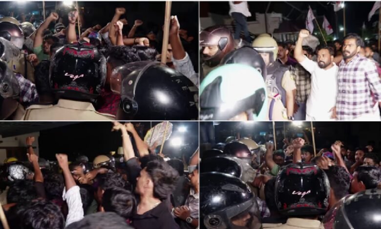 പീഡന വീരന് ആദരാഞ്ജലികൾ’; റീത്തുമായി രാഹുലിൻ്റെ ഓഫീസിലേക്ക് മാർച്ചുമായി ഡിവൈഎഫ്ഐ; സംഘർഷം
