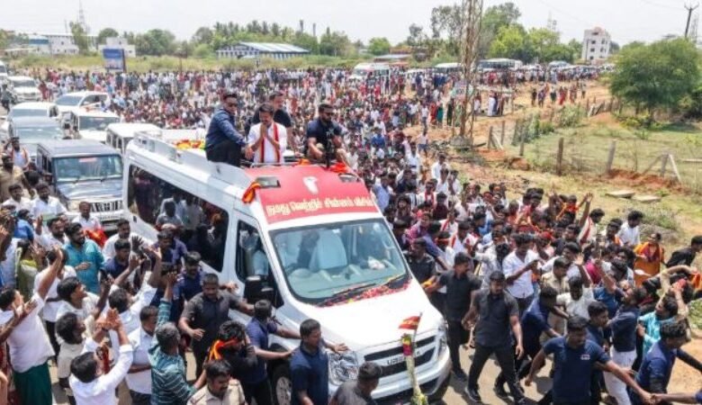 ചെന്നൈ: കടുത്ത ചൂടും തിരക്കും കാരണം അനുയായികൾ കുഴഞ്ഞുവീണതിനെ തുടർന്ന് തിരുപ്പൂർ ജില്ലയിൽ തമിഴഗ വെട്രി കഴകം പ്രസിഡന്റ് വിജയ് നടത്താനിരുന്ന റാലി റദ്ദാക്കി. 13 സ്ത്രീകളടക്കം 15 പേർ ബോധരഹിതരായതിനെത്തുടർന്ന് ചൊവ്വാഴ്ച പോലീസിന്റെ ഉപദേശപ്രകാരം ആറ് കിലോമീറ്റർ റോഡ്ഷോ റദ്ദാക്കിയതായി വാർത്താ ഏജൻസിയായ പിടിഐ റിപ്പോർട്ട് ചെയ്തു. പ്രചാരണത്തിനായി രാവിലെ 10 മണി മുതൽ തന്നെ ജനക്കൂട്ടം വേദിയിൽ തടിച്ചുകൂടി. വൈകുന്നേരം 4 മണിക്ക് പൊതുജനങ്ങളെ അഭിസംബോധന ചെയ്യുമെന്ന് പ്രതീക്ഷിച്ചെങ്കിലും വിജയ് ഏകദേശം 4.45ന് സ്ഥലത്തെത്തി.