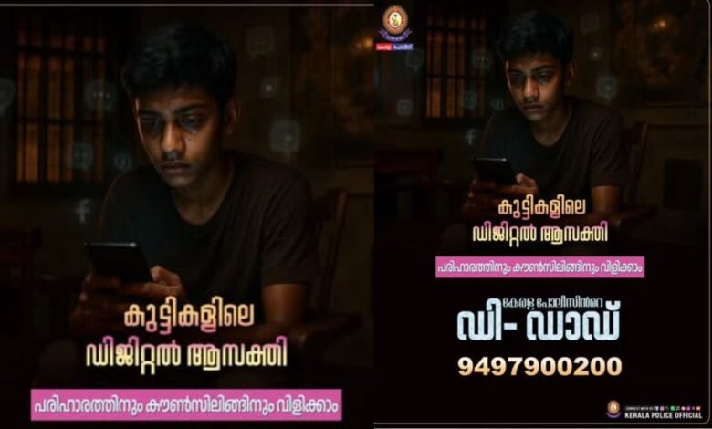 വര്ധിച്ചു വരുന്ന ഡിജിറ്റല് ഉപകരണങ്ങളുടെ ഉപയോഗം കുട്ടികളിലും മുതിര്ന്നവരിലും ഒരേപോലെ പ്രശ്നങ്ങളുണ്ടാക്കുന്നുണ്ട്. അമിതമായ സ്ക്രീന് ടൈം പഠനത്തെയും സാമൂഹിക ഇടപെടലുകളെയും ബാധിക്കുന്ന പശ്ചാത്തലത്തില് സഹായത്തിനായി കേരള പൊലീസ് ആരംഭിച്ച പദ്ധതിയാണ് ‘ഡി-ഡാഡ്’ (D-Dad) അഥവാ ഡിജിറ്റല് ഡി-അഡിക്ഷന് പദ്ധതി. കേരള പൊലീസ് സോഷ്യല് പൊലീസിങ് വിഭാഗത്തിന്റെ നേതൃത്വത്തില് കുട്ടികളിലെ മൊബൈല്, ഇന്റര്നെറ്റ് അടിമത്തത്തെ നിയന്ത്രിക്കുന്നതിനായി ആരംഭിച്ച പദ്ധതിയാണ് ഡി-ഡാഡ്. കൗണ്സിലിങ്ങിലൂടെ കുട്ടികള്ക്ക് ഡിജിറ്റല് അടിമത്തത്തില് നിന്ന് മോചനം നല്കുക എന്നതാണ് ഈ പദ്ധതിയുടെ ലക്ഷ്യമെന്ന് കേരള പൊലീസ് ഫെയ്സ്ബുക്ക് കുറിപ്പിലൂടെ അറിയിച്ചു.