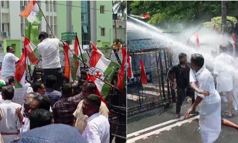 പാലക്കാട്: 2018 ലെ പ്രളയം മനുഷ്യനിർമിതമാണെന്ന ആരോപണത്തിൽ മന്ത്രി കെ കൃഷ്ണൻകുട്ടിക്കെതിരെ പ്രതിഷേധം ശക്തമാക്കി യു ഡി എഫ്. കൃഷ്ണൻകുട്ടിയുടെ ചിറ്റൂരിലെ ഓഫീസിലേക്ക് മാത്യു കുഴൽനാടൻ എം എൽ എയുടെ നേതൃത്വത്തിൽ യു ഡി എഫ് നടത്തിയ പ്രതിഷേധമാർച്ചിൽ സംഘർഷമുണ്ടായി. പ്രവർത്തകർ ബാരിക്കേഡ് മറികടക്കാൻ ശ്രമിച്ചതോടെ പൊലീസ് മൂന്ന് തവണ ജലപീരങ്കി പ്രയോഗിച്ചു. കരാർ കമ്പനിക്ക് ലാഭമുണ്ടാക്കാനായി തോട്ടപ്പള്ളി സ്പിൽവെ തുറക്കാൻ വൈകിയതോടെയാണ് പ്രളയം ഉണ്ടായതെന്നും ഇതിന് മന്ത്രിയുടെ ഓഡിയോ തെളിവാണെന്നുമാണ് യു ഡി എഫ് ആരോപണം. തന്റെ ശബ്ദം എ ഐ വച്ച് ഉണ്ടാക്കിയതാണ് എന്ന വാദം തെളിയിക്കാൻ മന്ത്രിയെ മാത്യു കുഴൽനാടൻ എം എൽ എ വെല്ലുവിളിച്ചു. അഴിമതിക്കായി നൂറുകണക്കിന് ആളുകളെ കൊലയ്ക്ക് കൊടുത്ത കൃഷ്ണൻകുട്ടി ഇനി ഒരു ദിവസം പോലും മന്ത്രികസേരയിൽ തുടരരുത് എന്നതാണ് യു ഡി എഫിന്റെ ആവശ്യം.
