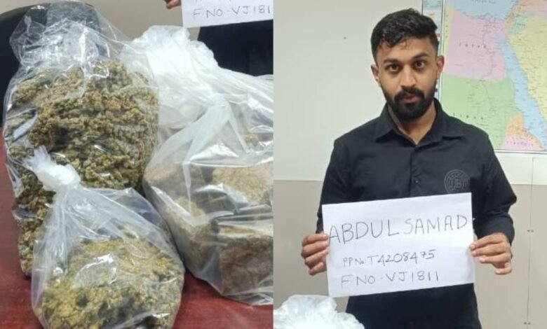 വിമാനത്താവളത്തിൽ നിന്ന് യുവാവ് പുറത്തിറങ്ങിയ ഉടനെ സംശയം തോന്നിയ കസ്റ്റംസ് ഉദ്യോഗസ്ഥര് പരിശോധന നടത്തുകയായിരുന്നു. സമദിന്റെ കൈയിലുണ്ടായിരുന്ന പെട്ടി പരിശോധിച്ചപ്പോഴാണ് വൻതോതിൽ ഹൈബ്രിഡ് കഞ്ചാവ് കണ്ടെടുത്തത്.