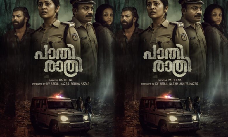 നവ്യ നായർ, സൗബിൻ ഷാഹിർ എന്നിവരെ കേന്ദ്ര കഥാപാത്രങ്ങളാക്കി റത്തീന സംവിധാനം ചെയ്യുന്ന “പാതിരാത്രി” എന്ന ചിത്രത്തിൻ്റെ ഫസ്റ്റ് ലുക്ക് പുറത്ത്. കെ വി അബ്ദുൾ നാസർ, ആഷിയ നാസർ എന്നിവർ ചേർന്നാണ് ചിത്രം നിർമ്മിക്കുന്നത്. മമ്മൂട്ടി നായകനായി എത്തിയ “പുഴു” എന്ന ചിത്രത്തിന് ശേഷം റത്തീന സംവിധാനം ചെയ്യുന്ന രണ്ടാമത്തെ ചിത്രമാണിത്. ഒക്ടോബറിൽ ചിത്രം പ്രദർശനത്തിനെത്തും. ചിത്രം കേരളത്തിൽ വിതരണം ചെയ്യുന്നത് ഡ്രീം ബിഗ് ഫിലിംസ്.