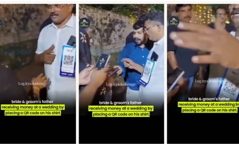 ഹൈ ലെവലാണ് കാര്യങ്ങൾ , മകളുടെ വിവാഹ ദിനം കീശയിൽ ക്യൂ ആർ കോഡ് പതിപ്പിച്ച് നിൽക്കുന്ന അച്ഛൻ ; വീഡിയോ വൈറൽ