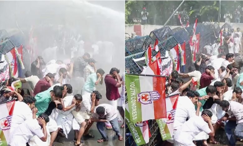 പ്രവർത്തകരെ പിന്തിരിപ്പിക്കാൻ പൊലീസ് പലതവണ ജലപീരങ്കി പ്രയോഗിച്ചു. ഇതിനിടയിൽ പൊലീസ് വാഹനത്തിന് നേരെ കല്ലേറും ഉണ്ടായി. പിരിഞ്ഞുപോകണമെന്ന് പൊലീസ് മുന്നറിയിപ്പ് നൽകിയിട്ടും പ്രവർത്തകർ പ്രതിഷേധം തുടരുകയായിരുന്നു. ഇതോടെ പൊലീസ് കണ്ണീർവാതകം പ്രയോഗിച്ചു.