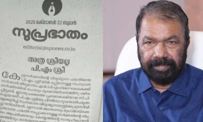 പിഎം ശ്രീ പദ്ധതി നടപ്പാക്കാനുള്ള നീക്കത്തിനെതിരെ സമസ്ത രംഗത്ത്. തിടുക്കത്തില് നടപ്പാക്കാനുള്ള നീക്കം ആപല്ക്കരമാണെന്ന് സമസ്ത മുഖപത്രമായ സുപ്രഭാതത്തില് എഴുതിയ ലേഖനത്തില് പറയുന്നു. പദ്ധതി മതേതരത്വത്തിന് ഭീഷണിയാണ്. വിദ്യാഭ്യാസം കാവിവല്ക്കരിക്കപ്പെടുമെന്നും തമിഴ്നാട് മോഡല് ബദല് വിദ്യഭ്യാസ നയം രൂപീകരിക്കണമെന്നും ലേഖനത്തില് പറയുന്നു.