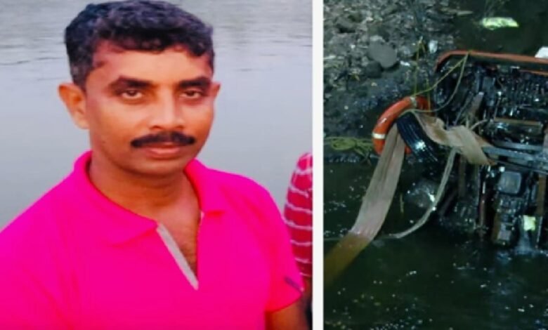 രക്ഷാപ്രവർത്തനം വിഫലം, വെള്ളക്കെട്ടിലേക്ക് മറിഞ്ഞ ലോറി ഉയർത്തി, ക്യാബിനുള്ളിൽ മുസ്തഫയുടെ മൃതദേഹം കണ്ടെത്തി
