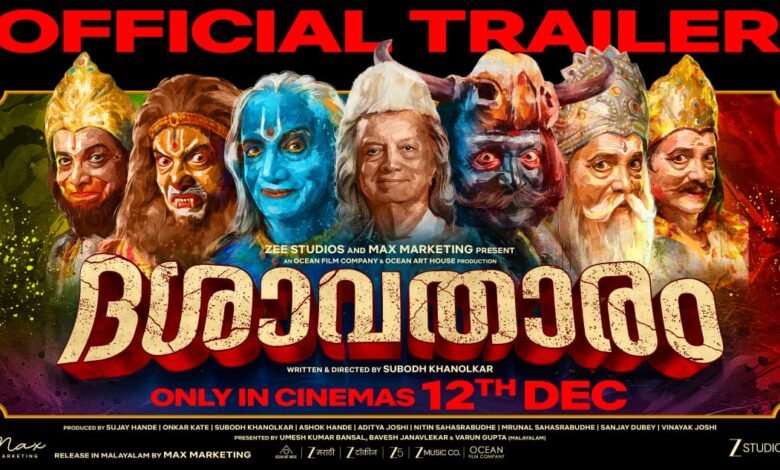 സീ സ്റ്റുഡിയോയുമായി സഹകരിച്ച് മാക്സ് മാർക്കറ്റിംഗ് അവതരിപ്പിക്കുന്ന “ദശാവതാരം” മലയാളം പതിപ്പിൻ്റെ ട്രെയ്ലർ പുറത്ത്. മറാത്തിയിലെ ബ്ലോക്ക്ബസ്റ്റർ ആയി മാറിയ ഈ ചിത്രത്തിന്റെ മലയാളം പതിപ്പ് 2025 ഡിസംബർ 12 ന് ആണ് കേരളത്തിൽ റിലീസ് ചെയ്യുന്നത്. സുബോധ് ഖാനോൽക്കർ രചിച്ചു സംവിധാനം ചെയ്ത ചിത്രം നിർമ്മിച്ചത് ഓഷ്യൻ ഫിലിം കമ്പനി, ഓഷ്യൻ ആർട്ട് ഹൌസ് പ്രൊഡക്ഷൻ എന്നീ ബാനറുകളിൽ സുജയ് ഹാൻഡെ, ഓങ്കാർ കേറ്റ്, സുബോധ് ഖനോൽക്കർ, അശോക് ഹാൻഡെ, ആദിത്യ ജോഷി, നിതിൻ സഹസ്രബുധെ, മൃണാൾ സഹസ്രബുധെ, സഞ്ജയ് ദുബെ, വിനായക് ജോഷി എന്നിവർ ചേർന്നാണ്. ചിത്രം മലയാളത്തിൽ അവതരിപ്പിക്കുന്നത് മാക്സ് മാർക്കറ്റിംഗ് ബാനറിൽ ഉമേഷ് കുമാർ ബൻസാൽ, ബവേഷ് ജനവ്ലേക്കർ, വരുൺ ഗുപ്ത. ചരിത്രത്തിൽ ആദ്യമായാണ് ഒരു മറാത്തി ചിത്രത്തിന്റെ മലയാളം പതിപ്പ് കേരളത്തിൽ തീയേറ്റർ റിലീസായെത്തുന്നത്.
