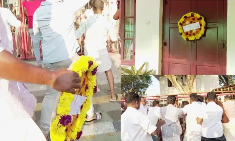 ആരോഗ്യമന്ത്രിയുടെ വീട്ടിൽ യൂത്ത് കോൺഗ്രസ് പ്രവർത്തകർ റീത്ത് വച്ചു ; പൊലീസിനുണ്ടായത് ഗുരുതര സുരക്ഷാ വീഴ്ച്ച
